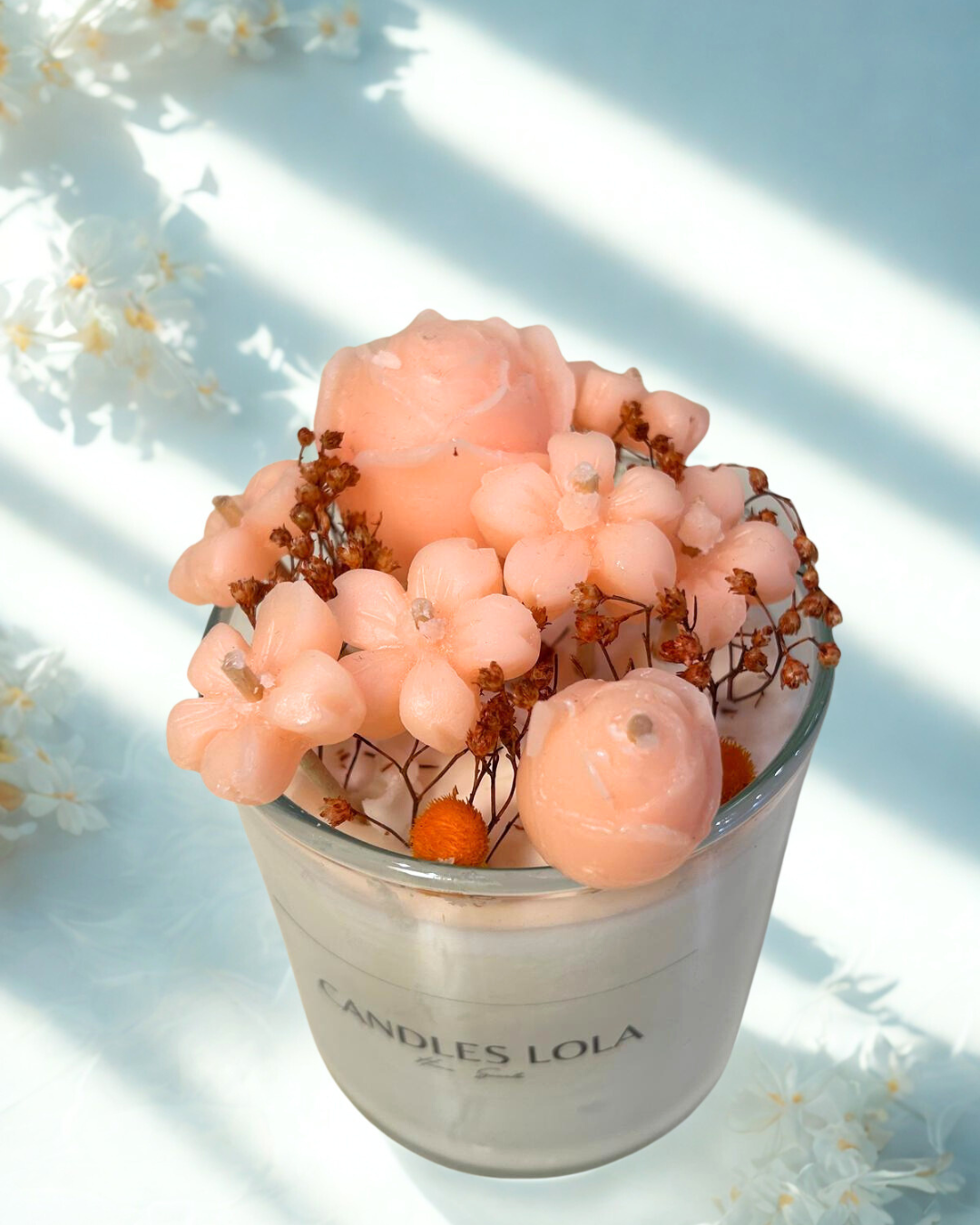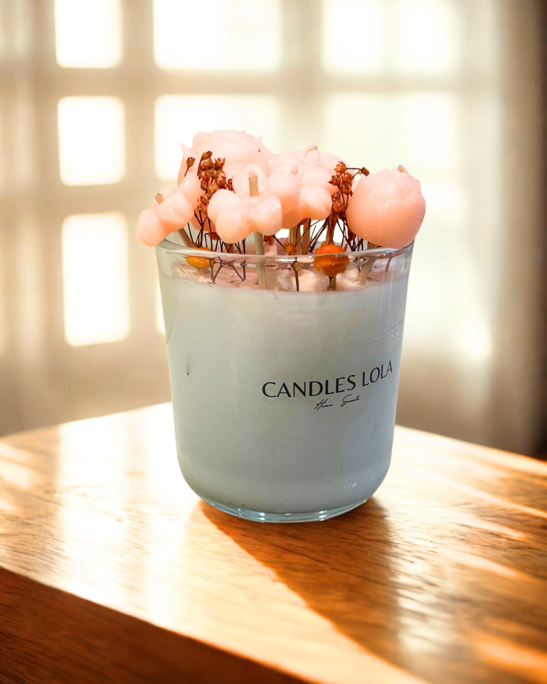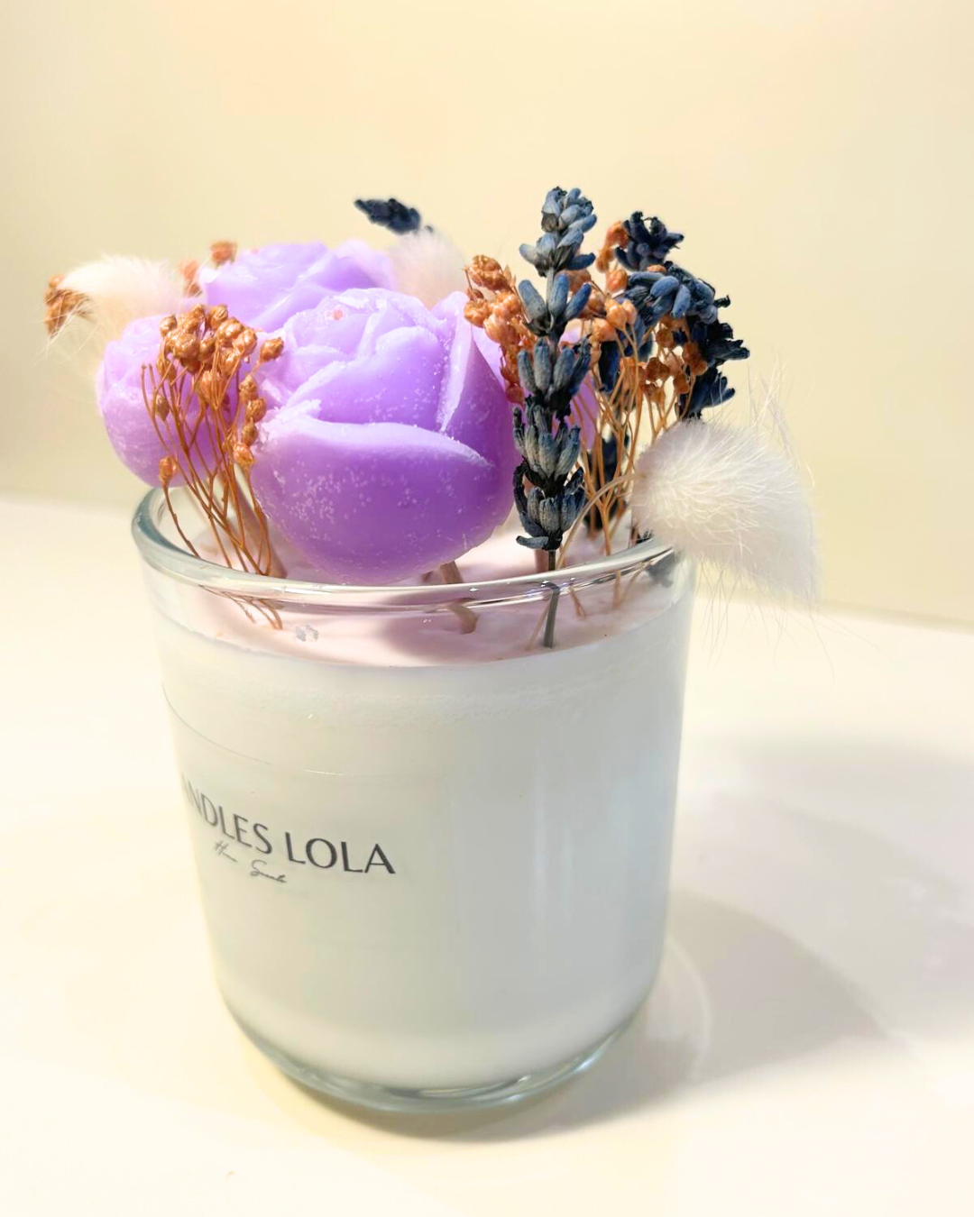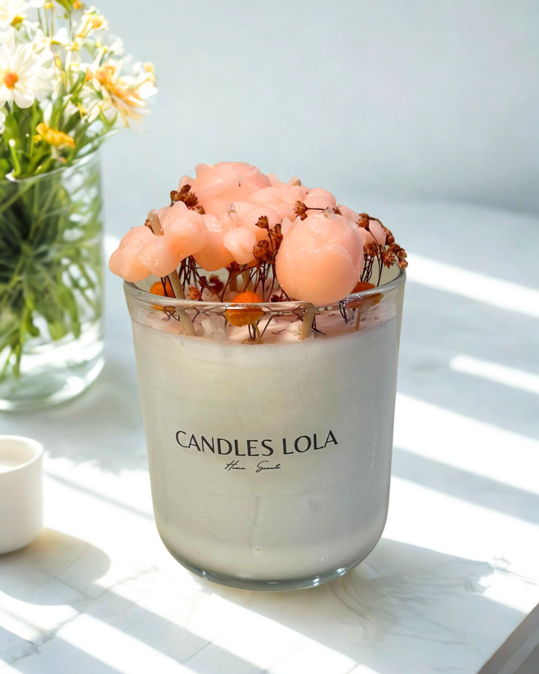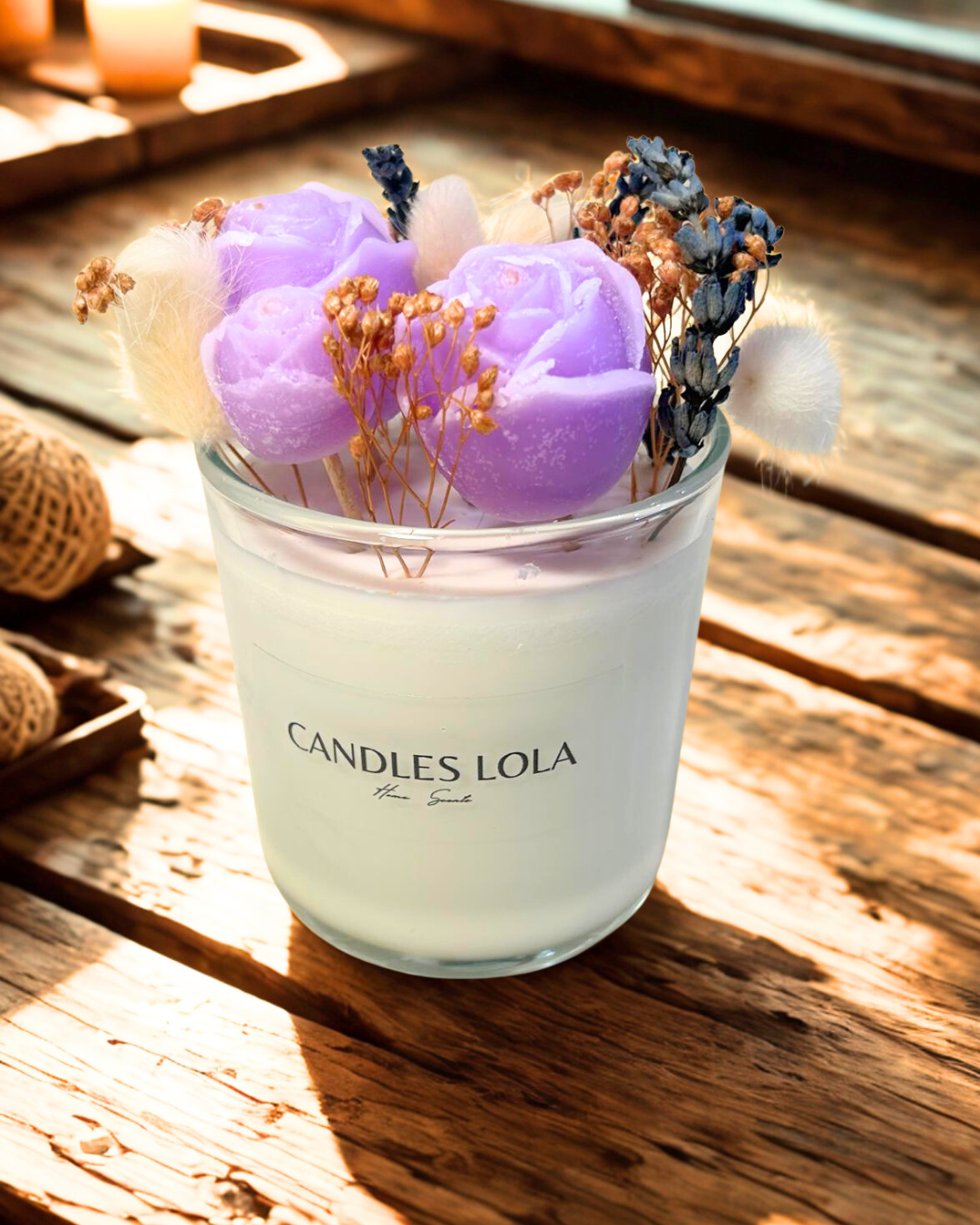 Ideal si buscas algo original, versátil y con un toque artesanal que marca la diferencia. Cada vela es única y en con flores en diferente colores,